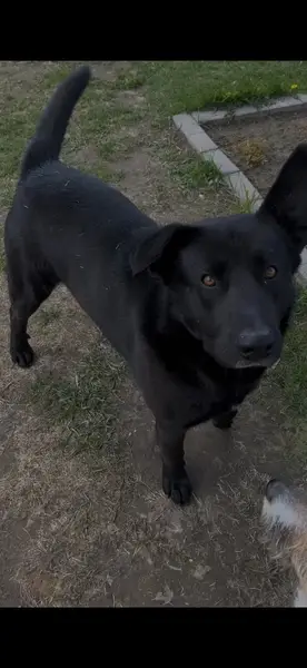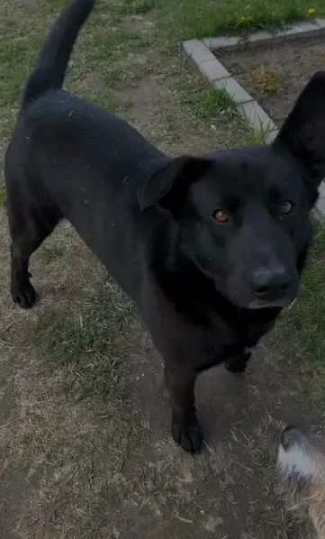Найдена собака на ул. Михайлова, 15. Девочка, была в черной шлейке. Возраст до года. Черная, с белым пятном на грудке.