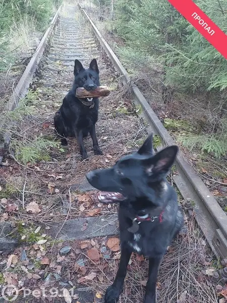 Потерялась собака, девочка, беспородная, ухоженная, окрас черный с коричневыми подпалинами, высота в холке 60 см, возраст примерно 1,5 года, шерсть блестит, уши висячие, ведет себя тихо, не лает, знает команды, ходит на улице, любит играть, ластится, вообще - домашняя.