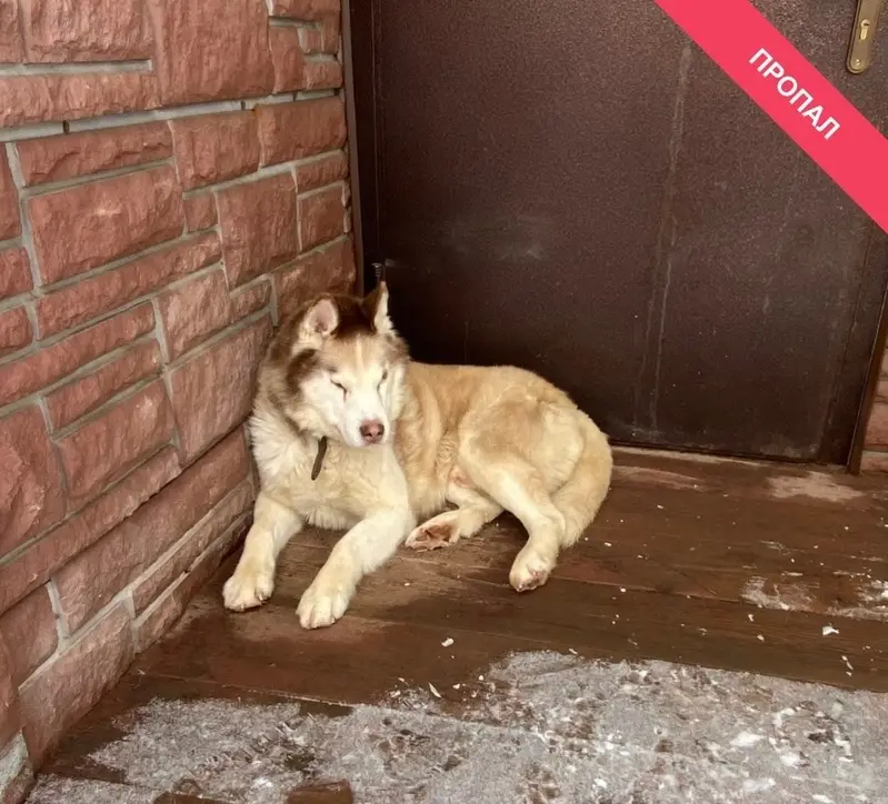 Хаски, рыжая, с ошейником, возраст не могу сказать, но наверное до 3х лет. С ошейником, чистая, ухоженная, игривая