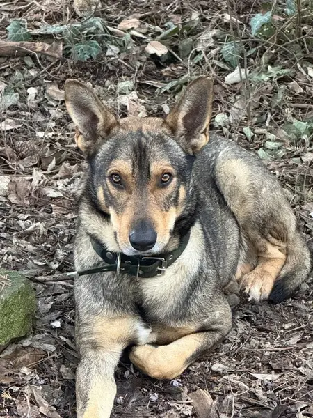 По адресу: Москва, ул. 16 Парковая, дом 23 второй день бегает Пёс (кобель) на шее металический ошейник и на нем карабин от поводка. Видно пёс был домашний, так как очень опрятный и понимающий.