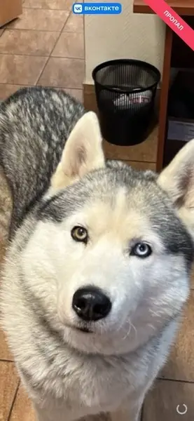 Хаски, серого цвета, глаза голубой и кари. Район Марьино