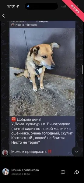 Pet911.ruМоскваНайденныеСобакиСобака найдена в коттеджном посёлке Высокий берег, Раменский район: контактный пёс в строгаче.