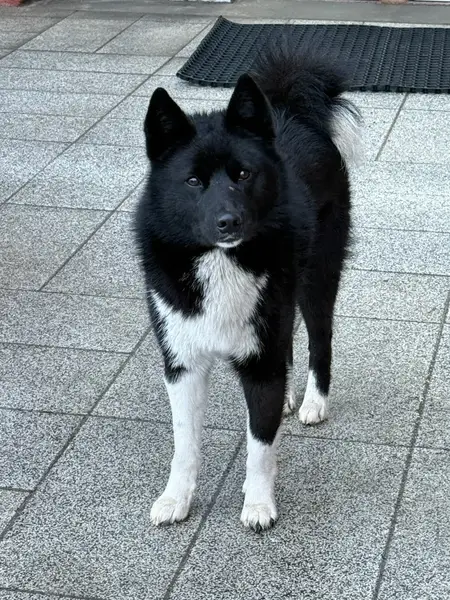 Девочка -щенок до 6 месяцев до 8 килограмм. Окрас: черный с белёсой грудкой и носочками. Очень смышленная и в меру игривая. Отлично ходит на шлейке и поводке . Любит побегать за щенячьими игрушками. Ориентирована на человека и любит почесушки.Вырастет средней.