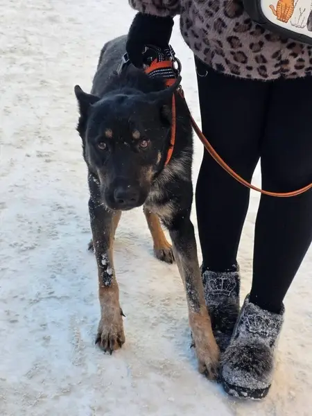 Нашла утром девочку, молодая, хоть по размерам и большая)) гуляла со своим, а она за нами ходила, пожалела и не смогла пройти мимо, привела домой, но до 19ч надо срочно куда-то пристроить. Пожалуйста, помогите. Окрас - черный, на лапах- серый. Ошейника не было, но видно, что она потерялась, шерсть не как у уличной собаки, уши купированы, но не профессионально.