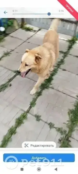 Бежево-серый окрас, кажется ещё щенок, на нем красный ошейник без адресника. Гуляет один во дворе жилого комплекса, хозяина поблизости нет. Дружелюбный и весёлый, не боится людей и собак