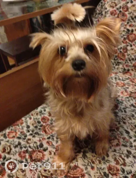 Найден в подъезде, девочка породы йокширский терьер. Хвостик завязан прозрачной резиночкой.