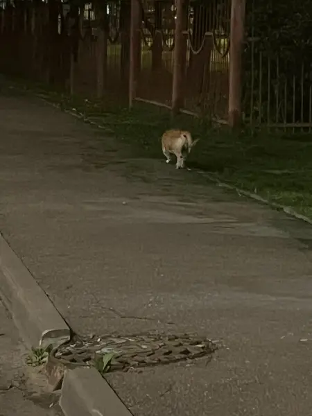 весь день за домом 146кор2 на Каширском шоссе сидела эта собака. Я думал утром что гуляет. вечером приехал по работе, она опять там сидит. пошёл фотографировать, встала и пошла от меня, ближе не получилось сфотать, убежала
