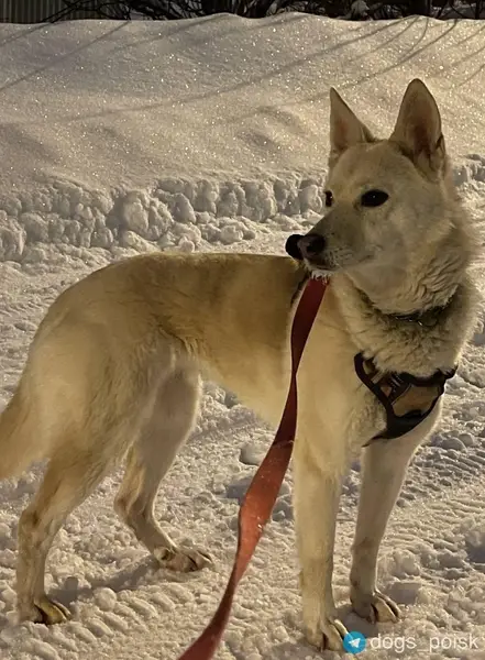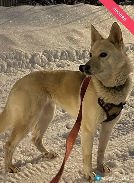 Акита ину, сука , красный ошейник.Не уходит с парковки д.26 по Часовой улице.Забрать не могу.Сука похоже течная