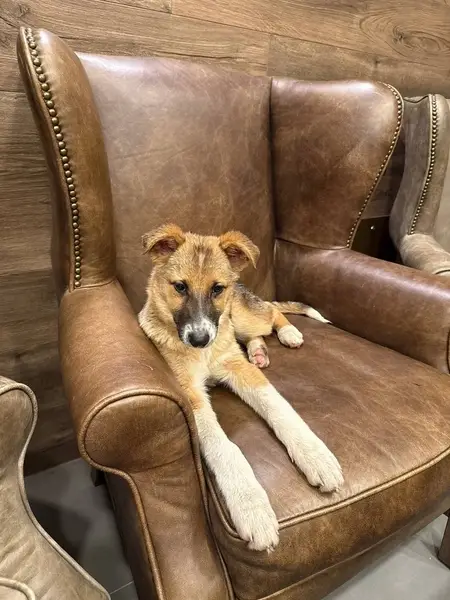 Найден щенок, мальчик 5-6 месяцев, метис. На щеночке ошейник, но адресника и чипа нет. Очень ласковый, контактный ребенок. Бегал рядом с домом по адресу ул.Широкая 2к1. На время взяла щенка к себе, пока не найдем хозяев
