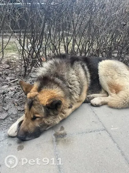 Москва. Найдена собака, немецкая овчарка, мальчик, черный ошейник, адресника и имени нет. Очень дружелюбный, явно домашний. Мерзнет и грустит. Покормили и напоили. Помогите найти хозяев. Лежит у курилки БЦ ИскраПарк, напротив подъезда N4.