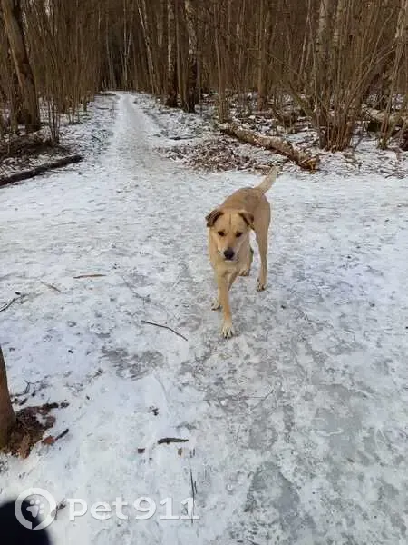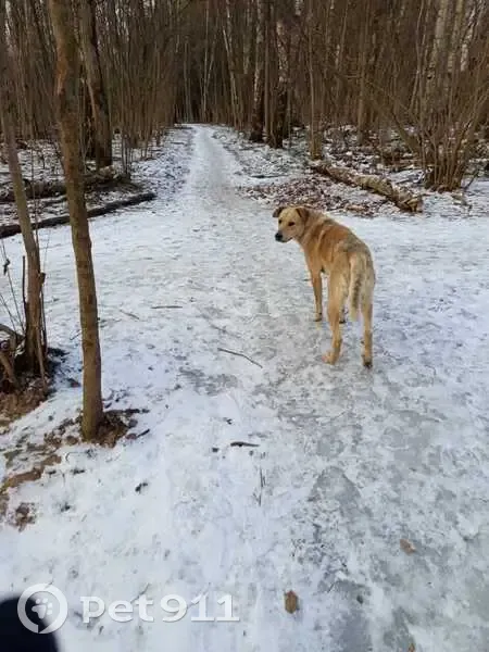Найден пес кобель, светлого окраса, без пятен, беспородный. Ошейника нет, бродит в лесу, в прогулочной зоне района Южное Бутово, подходит, не злобный, исхудавший. Из лесу не выходит. Сидит на перекрестках лесных дорожек и ждет...