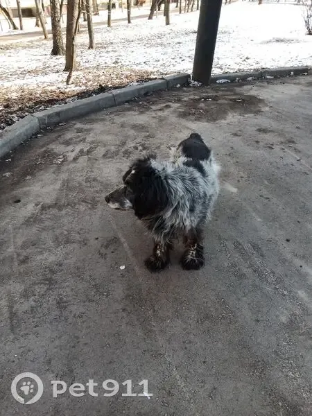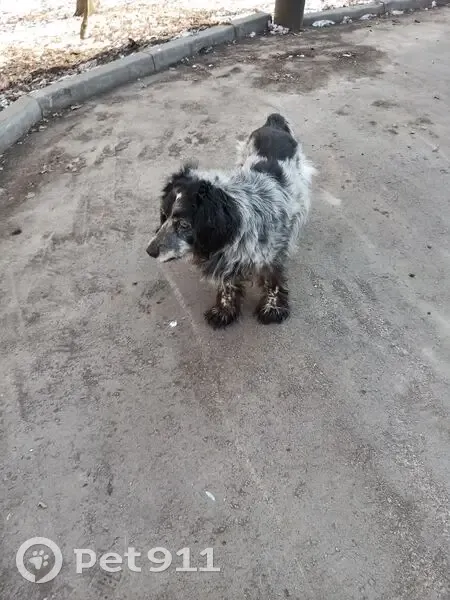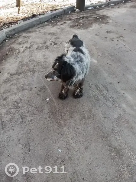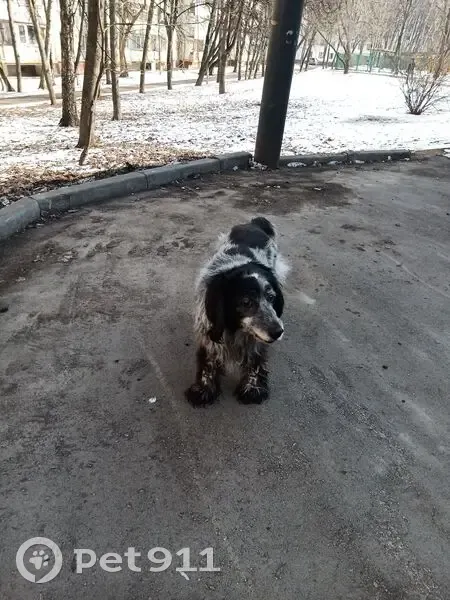 Порода: русский охотничий спаниель (ппредположительно) Пол: неизвестно Окрас: чёрно-белый Обстоятельства: собака была замечена у мусорных баков рядом с домом 53к2. Ушла вдоль детского сада 53А в сторону дома 51к5. На звуки, разные имена и команды не откликается. Корм с рук не берёт. Флегматичная и спокойная собака.