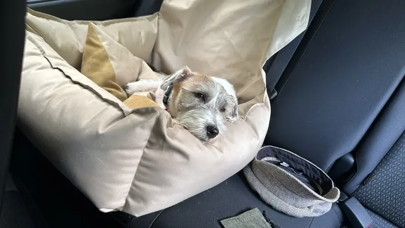 Джек Рассел с розовым ошейником