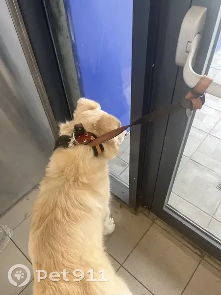 собака светлого окраса с короткой шерстью. Это метис лабрадора и золотистого ретривера. Голдадор — помесь лабрадора-ретривера и золотистого ретривера. Забежал в магазин четыре лапы на улице Твардовского. Там его и обнаружили. На нём есть ошейник. Или оставьте кому можно позвонили и собаку забрали в добрые руки.