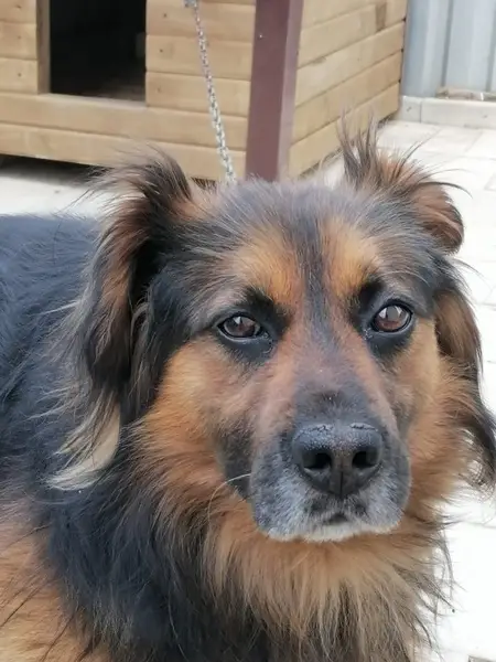 Черная спинка, рыжая мордочка! На собаке был ошейник. Животное стерилизовано, чипировано, но, к сожалению, информации о чипе в базе нет! В ветеринарной клинике предположили, что собаке около 7 лет!