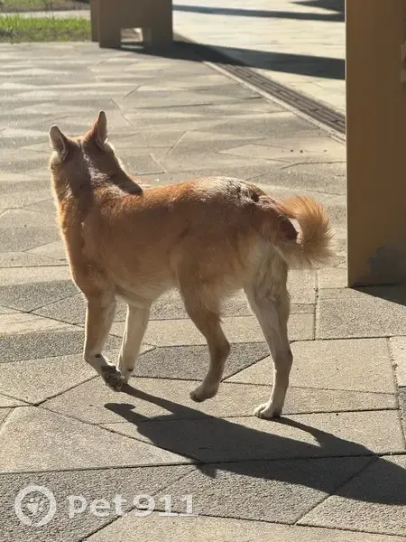 Собака у дороги, бегает и боится людей, чуть не попала под машину. Собака очень хочешь пить, но к незнакомым не подходит. Бегает и ищет хозяина, подходит к разным подъездам. Собака пугливая, но на вид домашняя. Ошейника нет