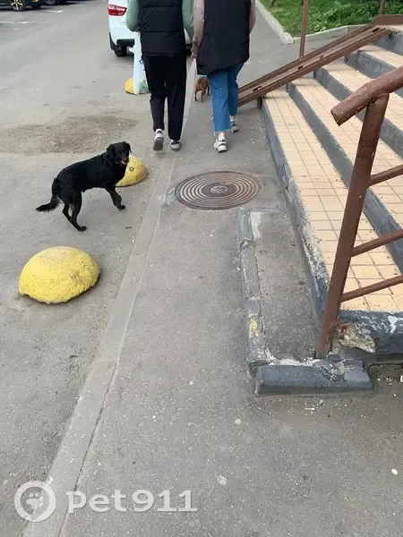 В районе Солнцево бегает черная собака. Породу не определили, есть ошейник с красным кружком. Видели около остановки по адресу Солнцевский проспект 25/2.