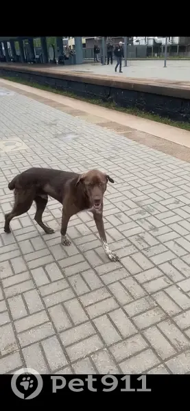На платформе МЦД-2 Тушинская бегает пес коричневого окраса с белой грудью и лапами, хвост купирован. Кобель, без ошейника. Скорее всего приехал со стороны Нахабино, Дедовск