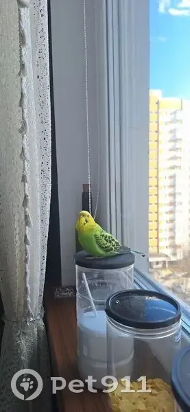 Волнистый попугай, девочка, зеленый окрас, черная спинка, желтая голова. Улетела по адресу: Москва, Митино, Генерала Белобородова, 16к2, вечером 26.03.