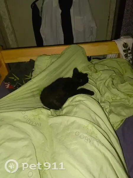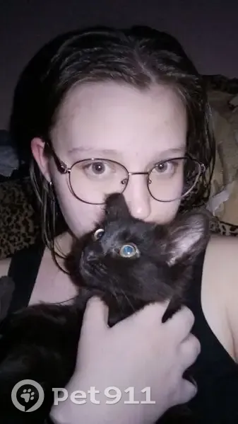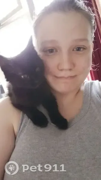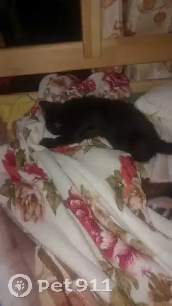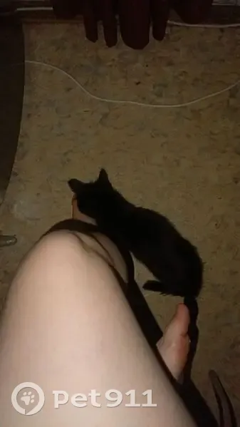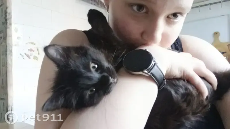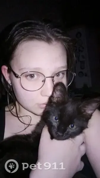 У нее черный окрас с немного белым пузиком, усики длинные, глазки бледно коричневатые, на кличку откликается по желанию, котенку чуть больше 2 месяцев, скорее всего упала с балкона рядом с домом не смогла найти, идет стройка перед подъездом могла испугаться и убежать куда-то еще дальше
