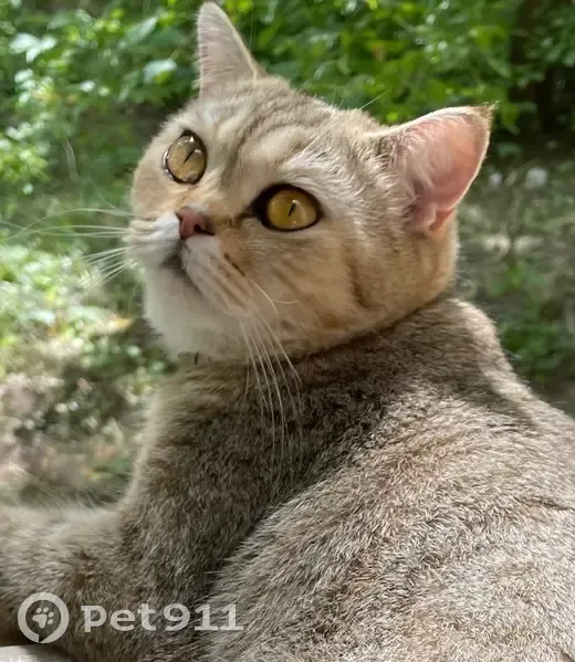 Британка, Окрас бежево-коричневый, кончик хвоста чёрный с полосками, глаза желтые(песочные), есть ошейник с узором лапок и бубенчик. Очень прошу, помогите мне найти мою любимицу