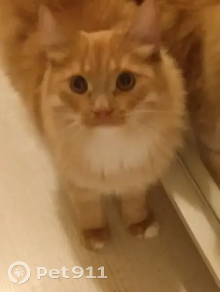 Кот упал с балкона 3-го этажа. Кот молодой (1 год). Окрас рыжий с белым, кот полупушистый, но очень пушистый рыжий хвост. Очень пугливый и недоверчивый.