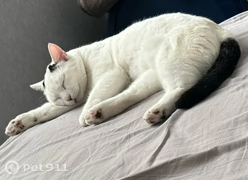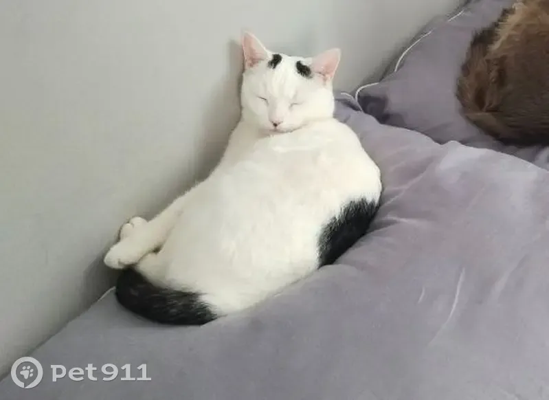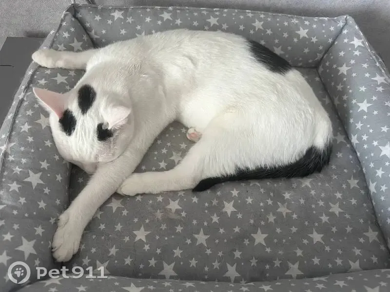 25.06.25 11.40 погнавшись за птицей выпал кот из окна (сломал оконную решетку) по улице Бибиревская 15 Мальчик, зовут Тейл, но на имя почти не откликается. Мяукает очень редко и очень тихо. Белый, на спине черное пятно, три черных пятнышка на голове, черный хвост. Очень Пугливый (забирали уличного с СТО). Но если взять на руки - ласковый и сразу мурчит.