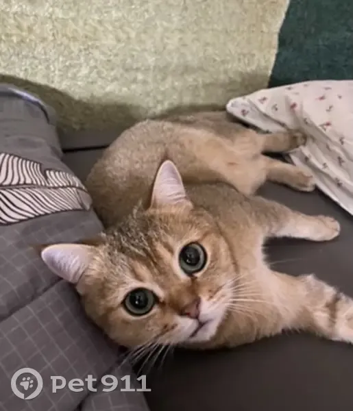 Золотистого цвета, с большими голубо-зеленоватыми глазами. Не очень тактильный кот, поэтому на руки не особо идет, но при этом не укусит, просто не любит сидеть на руках
