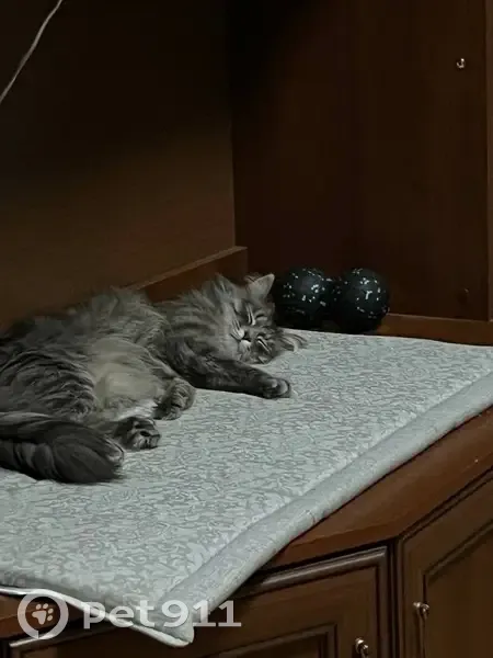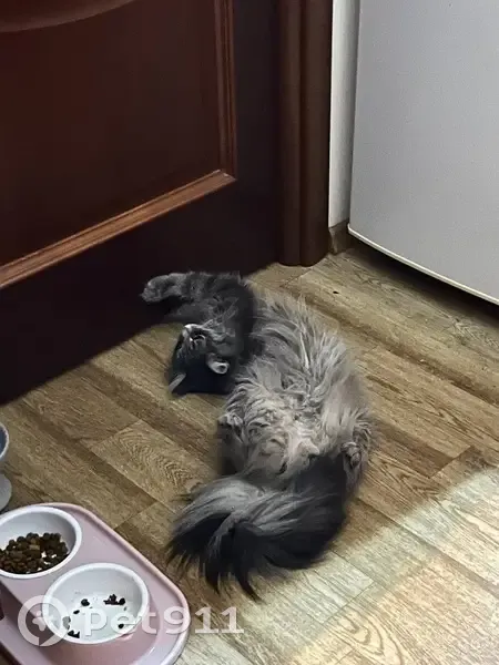 серая и очень пушистая кошечка, отзывается на свою кличку нами, ярко-зелено-желтые глаза, ей 2 года. Последний раз видели ее 14.07.2025 в 2-3 часа ночи, сейчас 18:50 и ее в квартире нигде нет (она была закрыта на ключ) камерой она также не была замечена, еда не тронута и никак не отзывается. Всю ночь была открыта дверь балкона, есть подозрение, что она выпрыгнула, хотя это маловероятно