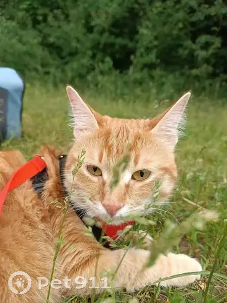 Рыжий окрас в полоску, девочка, грудка белая, лапки на кончиках белые. Людей не особо боится. При наличии хоть какой то информации пишите, звоните в любое время. Она как член семьи :(