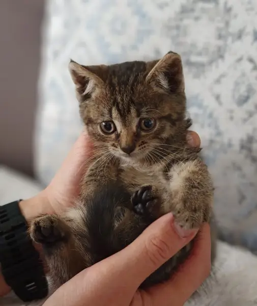 Рано утром 29 июля потерялся котенок, девочка, примерно 2,5 мес. Предположительно выпрыгнула из окна 3го этажа, почти мгновенные поиски не дали результата Приметы: - спинка и мордочка окраски «шпроты» - животик в пятнышки - течет носик, периодически чихает - маленькая, в длину по туловищу сантиметров 20 По поведению: - пуглива и боится людей (дикая) - в контакте ласковая и тактильная - не кусается, не царапается, спокойная - может долго мяукать, если что-то беспокоит