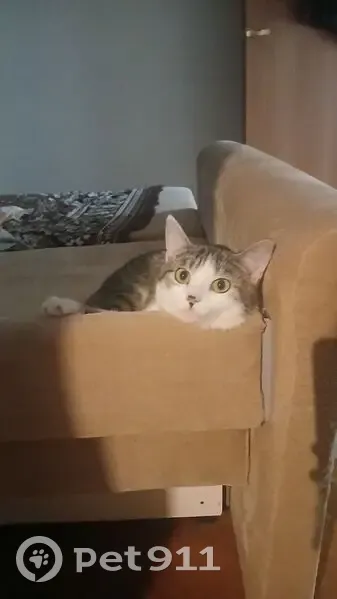 Кот спрыгнул с третьего этажа, когда спустились искать, его уже не было. На правой передней лапке серое пятнышко с внутренней стороны лапки. На носу два темных пятна в виде треугольника