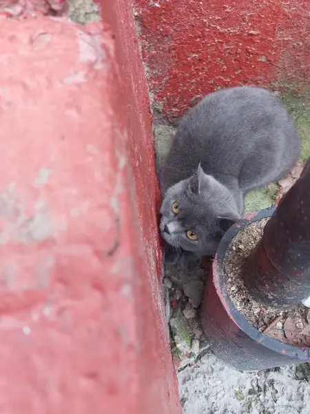 Голубая Шотландский скоттиш, прямоухая. Не дается в руки чужим, если испугана может и поддастся, возможно выпрыгнула из окна. Над левым ушком в шерсти прощупывается палипул.