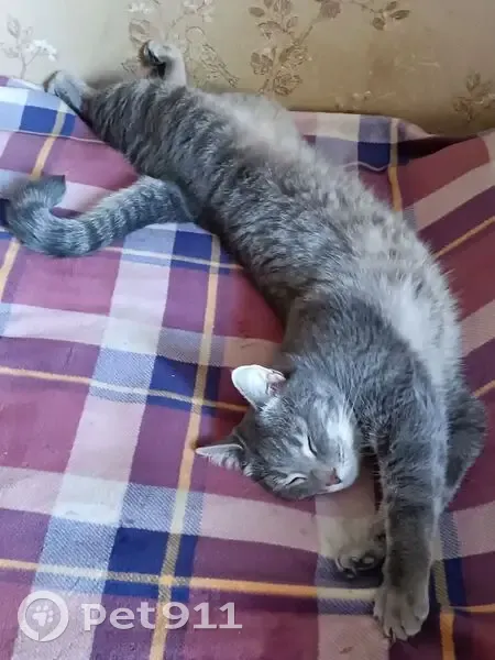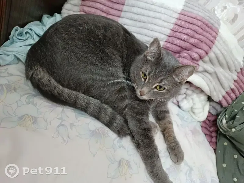 Потерялся крупный серый кот в полоску, на морде небольшая светлая "бабочка", немного такого же светлого на подбородке. Нос и подушечки лап коричнево-фиолетовые. Кличка Плутон, Плут. Возраст 3 года. Кастрирован. Дома очень ласковый, как поведет себя в непривычных условиях не знаем. Контактные телефоны 89637579643 Элена, 89096898054 Андрей, 89777121860 Софья