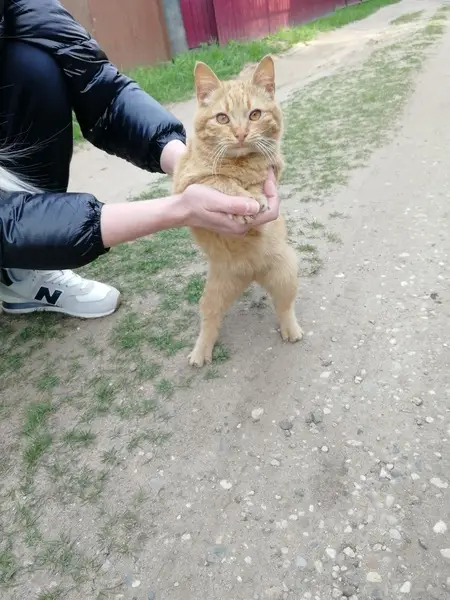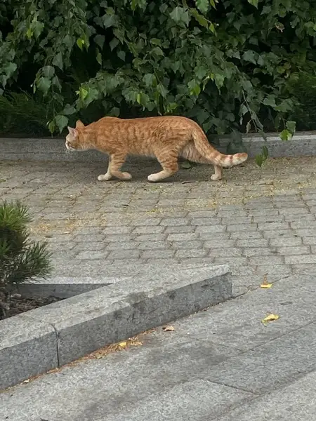 Очень осторожный, но добрый рыжий котик. Если на него посмотреть, то складывается впечатление, что он очень серьезный. Складывается впечатление, что у него торчит язычок. Одно время появлялся около этого дома у подъездов, потом пропал. Его там подкармливали. Будем очень благодарны за любую информацию о нем!