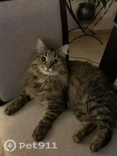 Окрас серо-коричневый, если пригладить то видны будут темные полоски (особенно на лапах), грудка белая, длинношерстная и очень пушистая с длинными усами. Кошка домашняя, ласковая, но пугливая, беспородная. На шее серый ошейник. Возраст 2 года, откликается на имя Буся. Выскочила из квартиры и убежала на улицу. В последний раз видели её по адресу г.Москва, Шереметьевская улица, д.35 11.09.2025 примерно в 14:00.