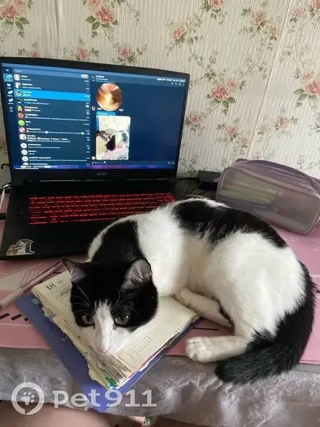 Пропал кот. Окрас: белый с черными пятнами на мордочке, спине и хвосте. Выпал из окна и убежал в сторону школы, огражденной забором. В последние разы видели на территории школы и футбольного поля. Пугливый, небольшой, подросток.