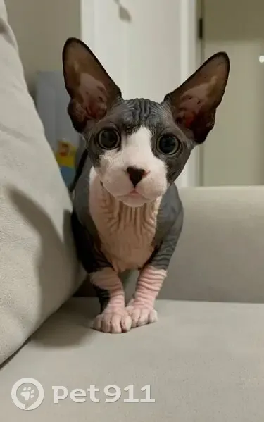Темно серый, шейка и лапки розоватые. Канадский сфинкс. Кличка Тони.