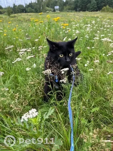 Добрый день! Сегодня утром гуляя с собакой, приблизительно около 6 утра видела черного кота в парке, в соснах, где белки . Это приблизительно напротив дома Исаковского д.20 корп 1. Кот перебежал тропинку и скрылся в траве в соснах. Звала его, не отозвался. Кот был небольшой. Может поможет эта информация