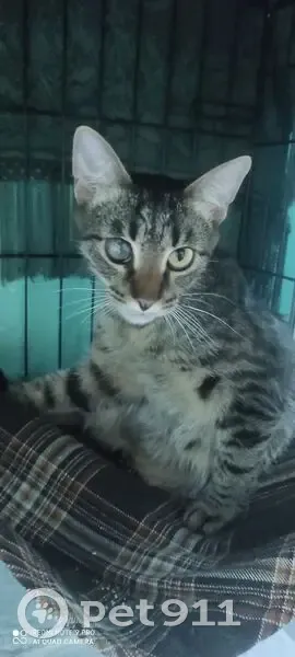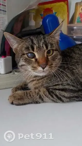 Окрас камышевый, правый глазик с белой пленкой, спинка выбрита по бокам для уколов. Выпрыгнул из переноски. Шли из клиники Медикусь. Делали уколы Мартину. Пугливый. В руки не пойдет. Вознаграждение нашедшему 10000 рублей.