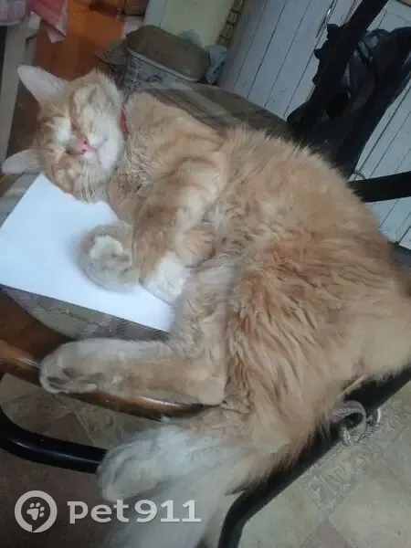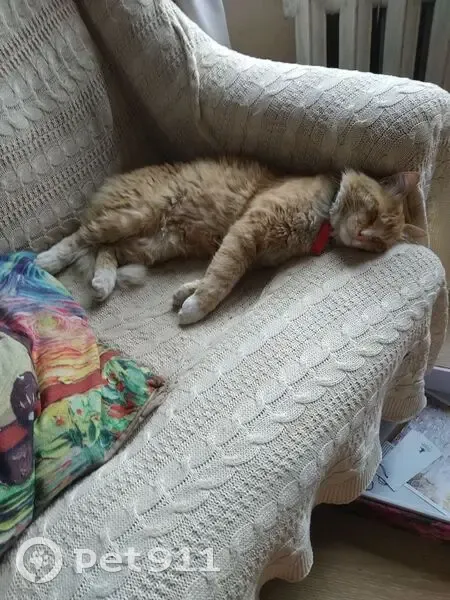 Рыжий, с белым пятном на носу и белыми носочками. На ошейнике бирка с номером телефона хозяина. Но могли цифры затеряться. Живёт на первом этаже и сам ходит гулять через открытое летом окно. Когда холодно, пролазит в подъезд через подвал и ждёт хозяина под дверью. Коту почти четыре года, прекрасно ориентируется в своем районе и каждый день возвращается домой. Может громко мяукать, общаясь с прохожими, потому что общительный. Но если Вы увезли его в другой район, он не найдет дороги! Если он сейчас у Вас дома, то наверняка орет под дверью, потому что хочет домой! Он не потерялся! Пожалуйста, верните его на то место, где взяли, он придет домой! Мы очень скучаем и оплакиваем кота четвертый день.