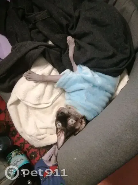 Канадский сфинкс, голубые глаза, окрас серый (лиловый минк), черная переносица. Пропал в районе 16:30 - 17-18 часов, возможно выбежал из квартиры.