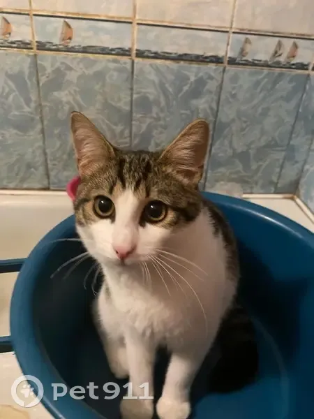 Окрас серый в полоску сверху и белый снизу. Пошли гулять, вырвался и убежал. Потом (уже ночью) видели около дома (Палехская улица, 13) но поймать не смогли