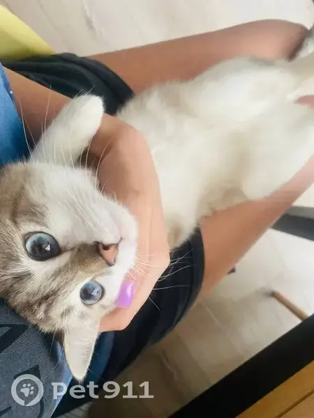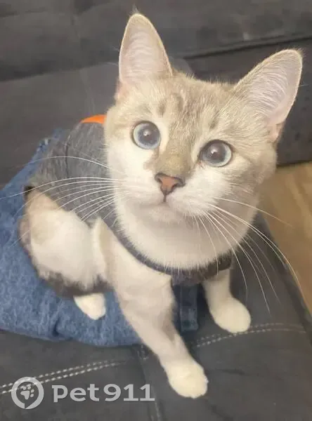 Голубые глаза, светлая шерстка (темный хвостик), пугливая. Окрас бежевый с белым. Чипирована. Была дома по адресу: Шенкурский проезд, 10В (Алтуфьево, Отрадное, Бибирево) Окна, двери закрыты - дома была не одна. Как испарилась