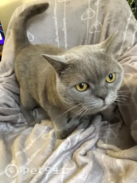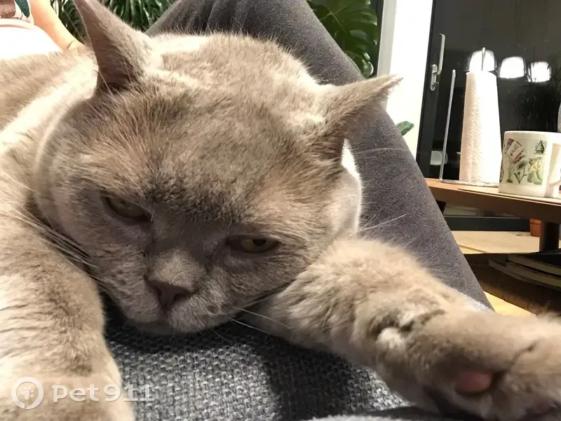 Пропал кот 10 лет . Британец ( шотландец ) серый ( лиловый ) очень осторожный , домашний , пугливый . Ищем всеми возможными способами . Вознаграждение гарантировано !
