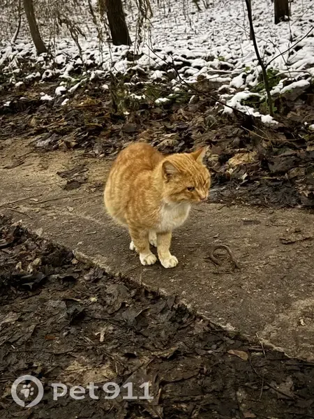 Кот рыжий с белой грудкой и лапками, глаза текут, на грудине выпирает кость ( старая травма) Голдик живет на улице, если его кто-то забрал или знает что с ним, сообщите пожалуйста, мы волнуемся