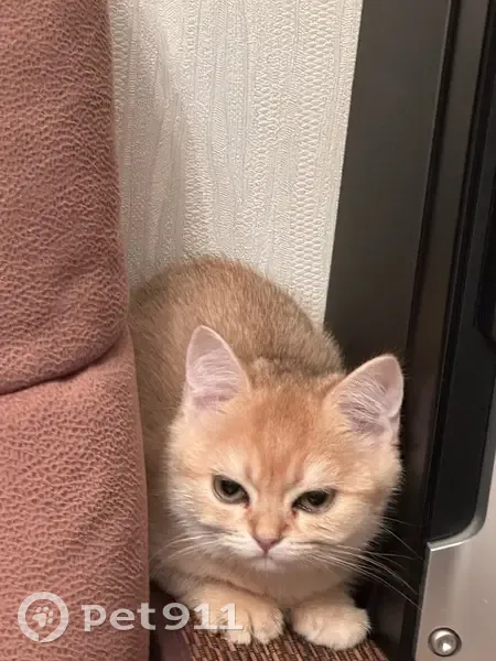 Шотландская прямоухая, окрас шиншилла , светло рыжая, подушки лапок и кончик хвоста чёрные. 3 месяца, куплена недавно и еще очень пугливая. Предположительно выскользнула из квартиры, когда хозяин пошел выносить мусор.