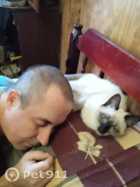 Сиамская кошка светлая с темной мордочкой,лапами,хвостом. Назадних лапках белые носочки. Видели Нагатинская наб. Д16