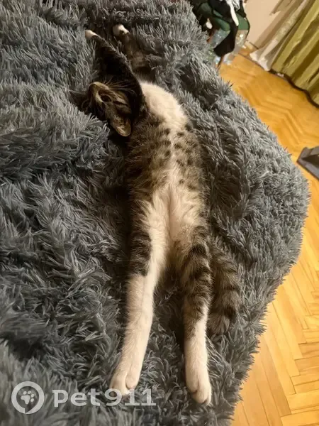 Серо-бело-черный,пузико белое,шея белая,лапки белые. Отзывается на Джеки,боится и острожно относится к неизвестным людям,прячется. Пропал по адресу : большая Спасская 8 Возможно вылез в окно,когда уходил на работу,оставлял всегда ему чуть приоткрыто окно,так как любит сидеть у окна. Не кастрированный.. Размер не большой Возраст год Ухоженный,ногти по стриженные. Сам по себе ласковый ,игривый