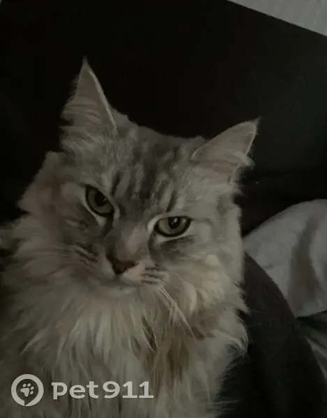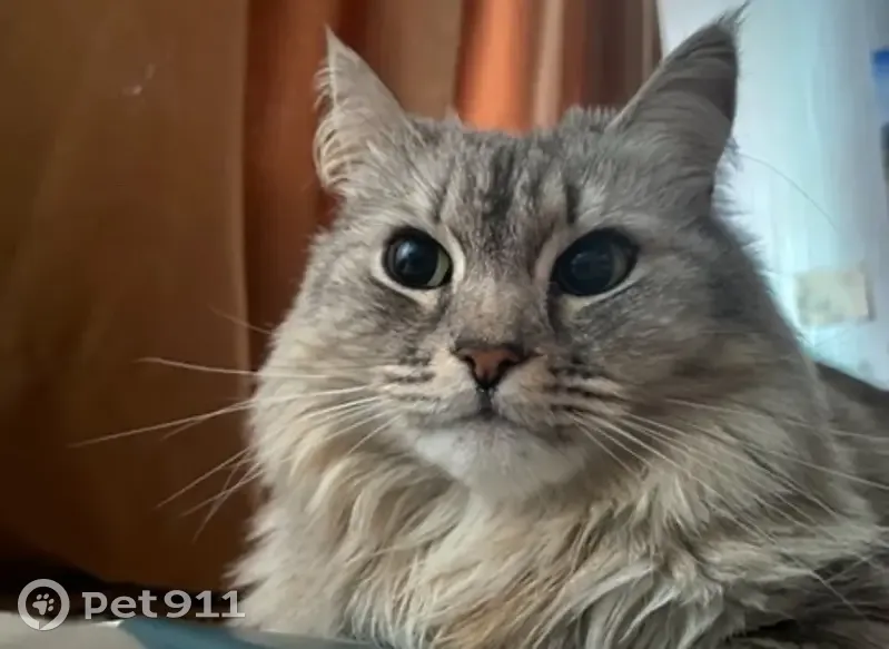 порода Сибирская, свето-серого цвета, местами белая, очень пушистая, хвост очень большой и пушистый